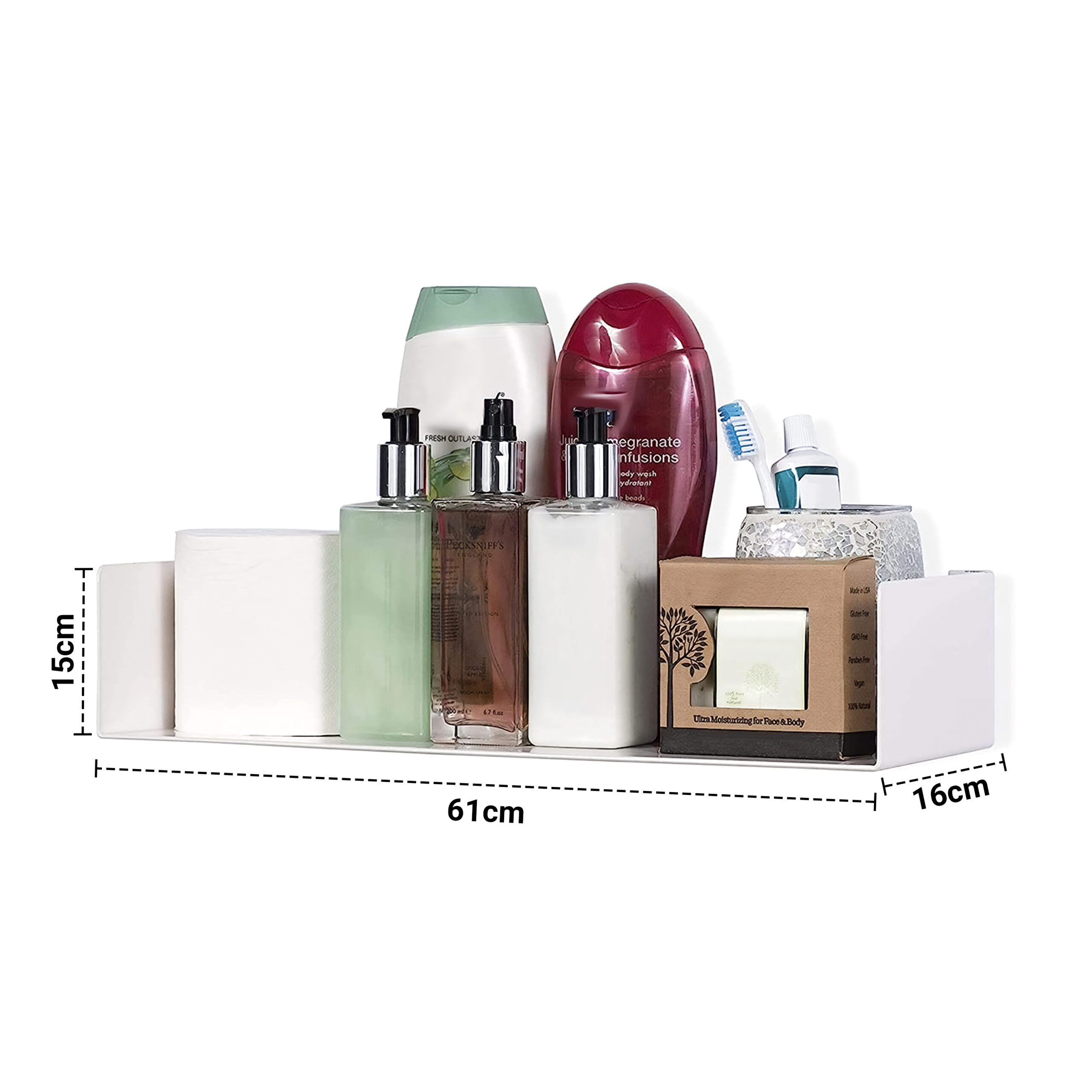 - SAVE SPACER: L=15.5cm, B=60cm, H=15cm. U-shaped shelves are a versatile and stylish solution for storing and organizing small items or clearing away clutter in any room of your home. Whether it’s your bedroom, bathroom, kitchen, or living space, these shelves provide an elegant way to keep your essentials within reach while freeing up valuable counter space.