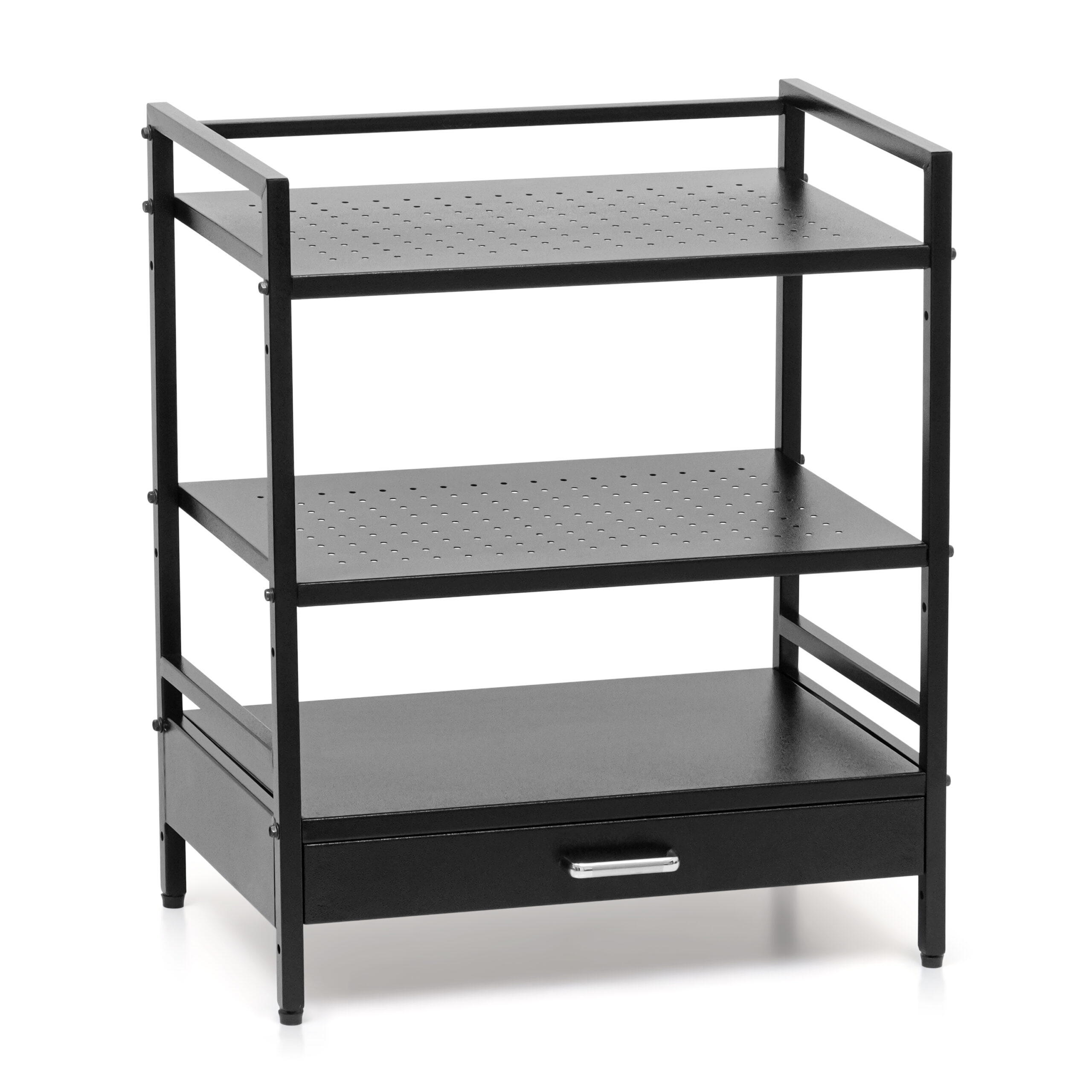 - HEIGHT ADJUSTABLE FEATURES: This height adjustable dish rack not only be placed in the kitchen as a microwave, OTG, vessels, coffee bar, or baking workbench but also in garages, and workshops to store power tools, Additional drawer storage helps in storing small tools like spanners, nuts, bolts, etc.