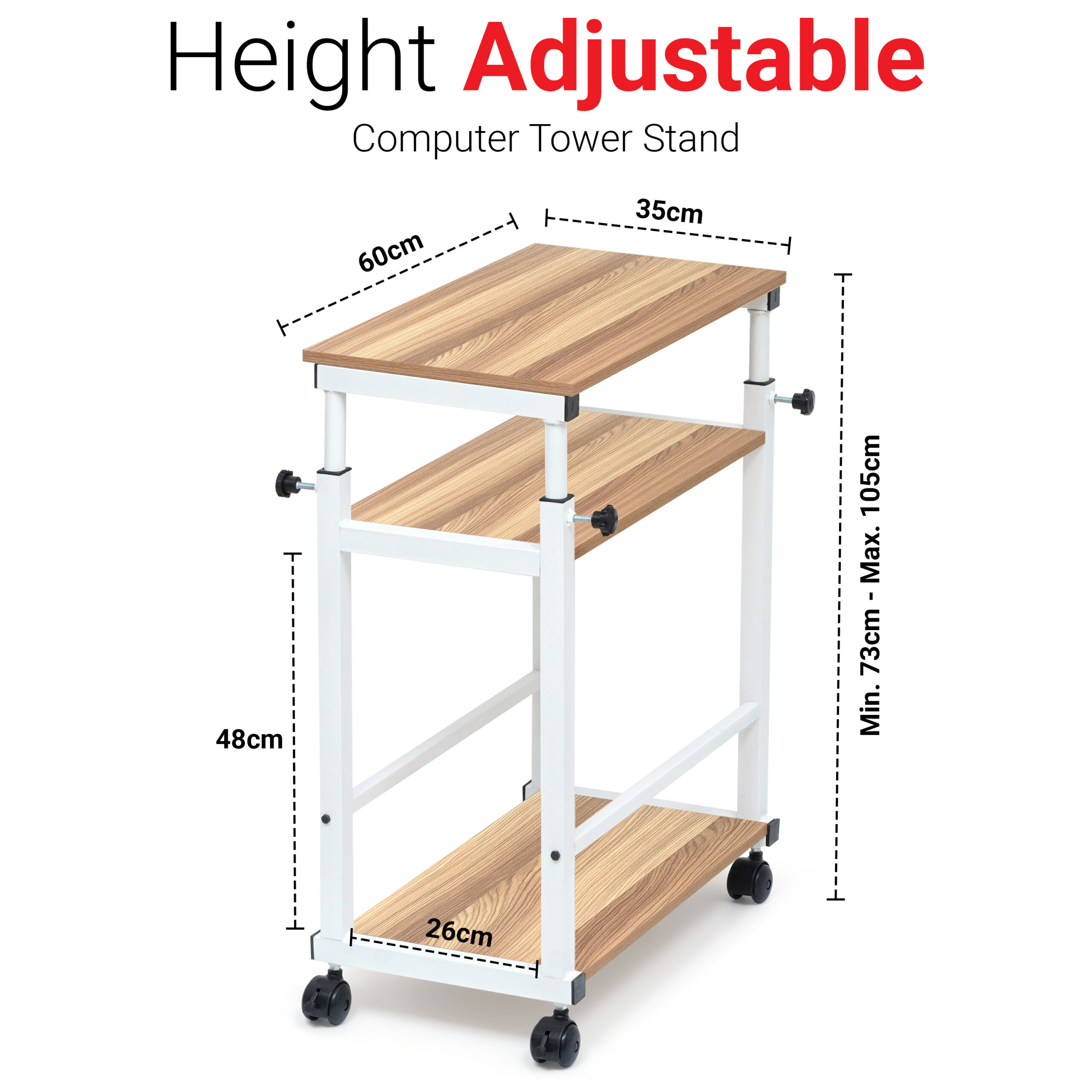 - WORKING ANYWHERE: With 4 mute rolling casters, perfect for the home office to set up the workplace immediately. This metal CPU stand adjustable height also serves as an ergonomic mobile side table for resting arms and operating mouse. The computer tower stand with 2 lockable casters for fixed position, guaranteeing stability and durability.