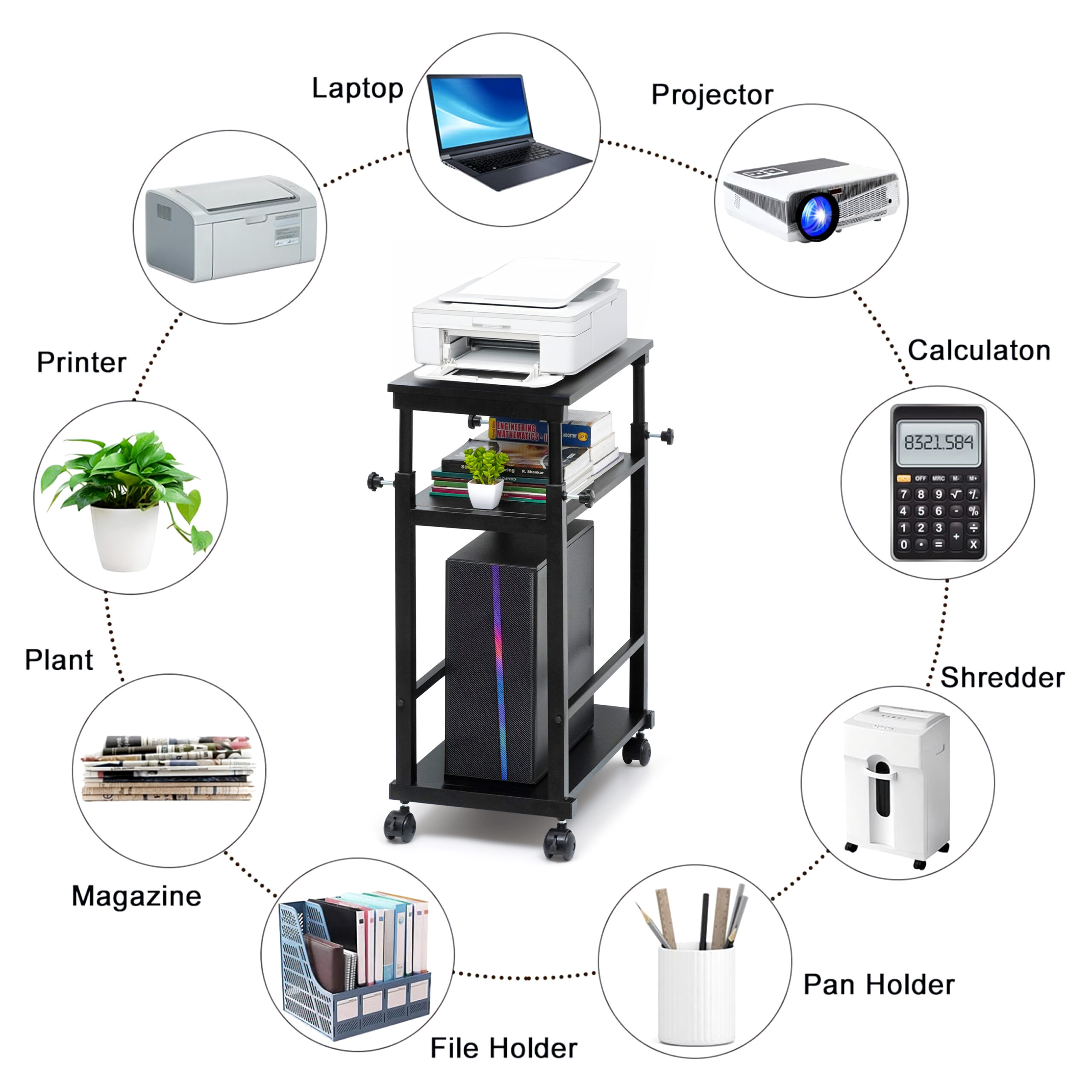 • MULTIFUNCTIONAL PC STAND: This mobile pc tower stand can be used in different places. It could be used not only as a computer tower stand but also as a printer stand and file storage shelf in your office. The printer stands with storage can meet your different storage needs.