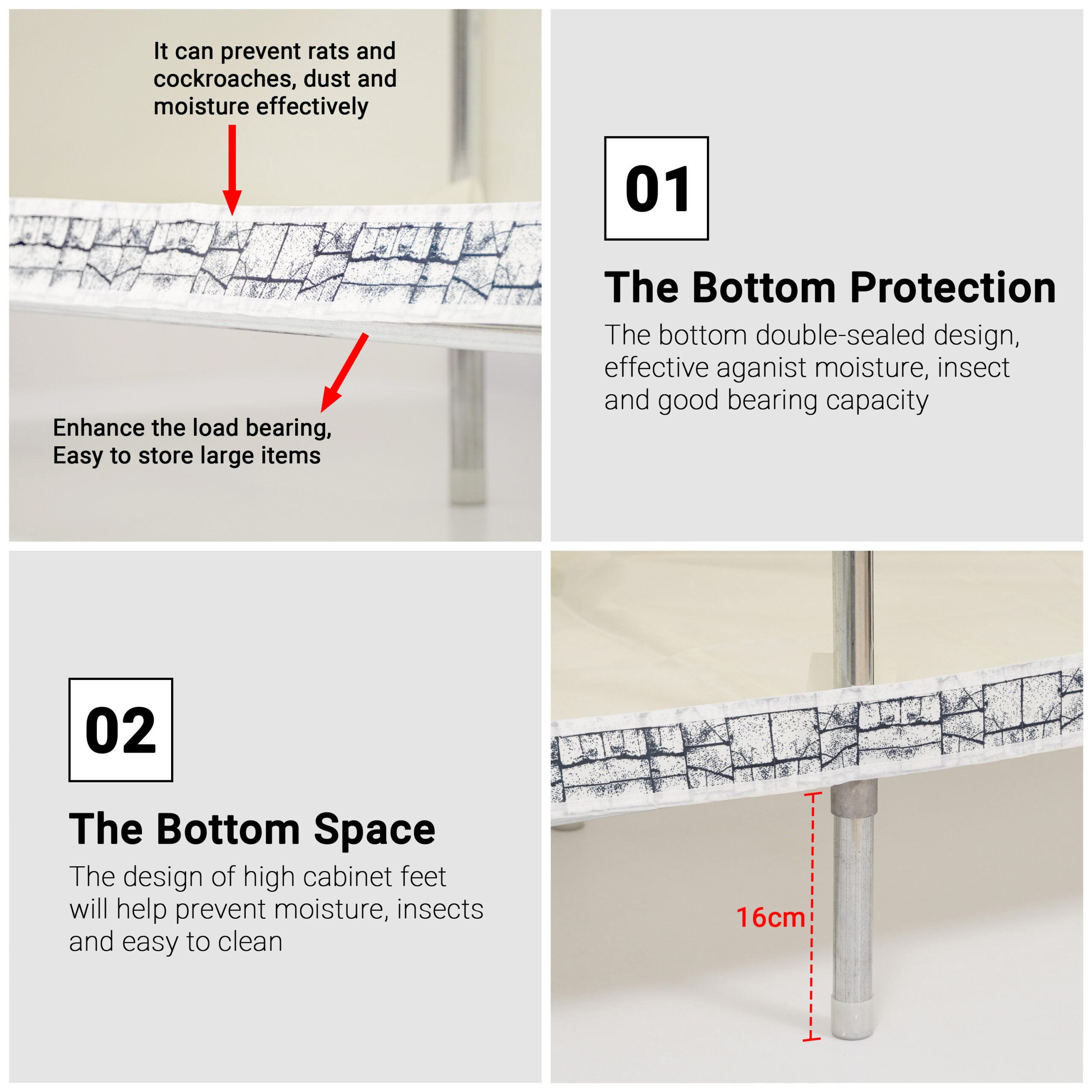 - MATERIAL: The garment organizer rods are made of stainless steel. The clothes closet is covered with selected non-woven fabric cloth. The closet organizer is dustproof, moisture-proof and corrosion-resistant. The four-tier shelving system provides ample space to accommodate various items efficiently.