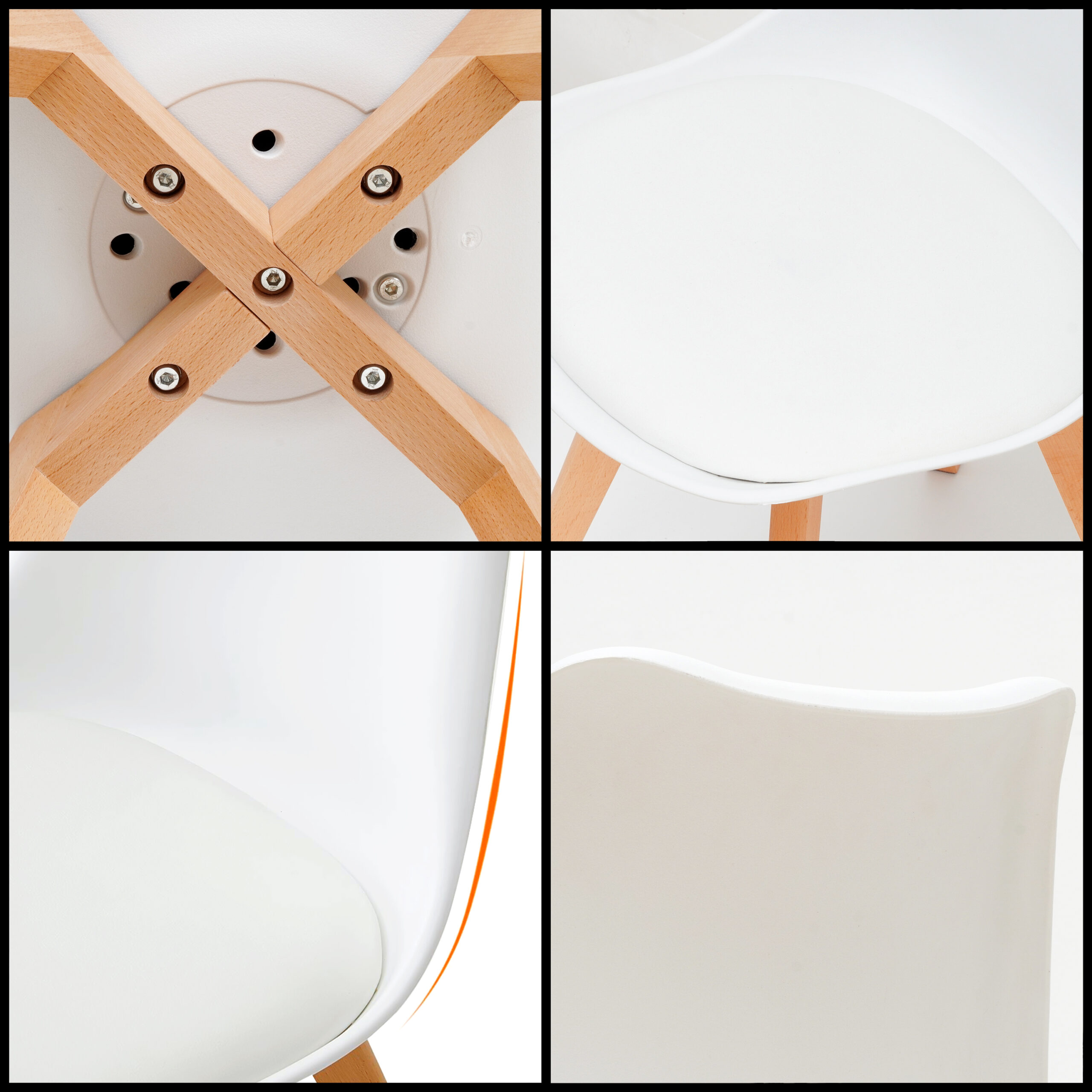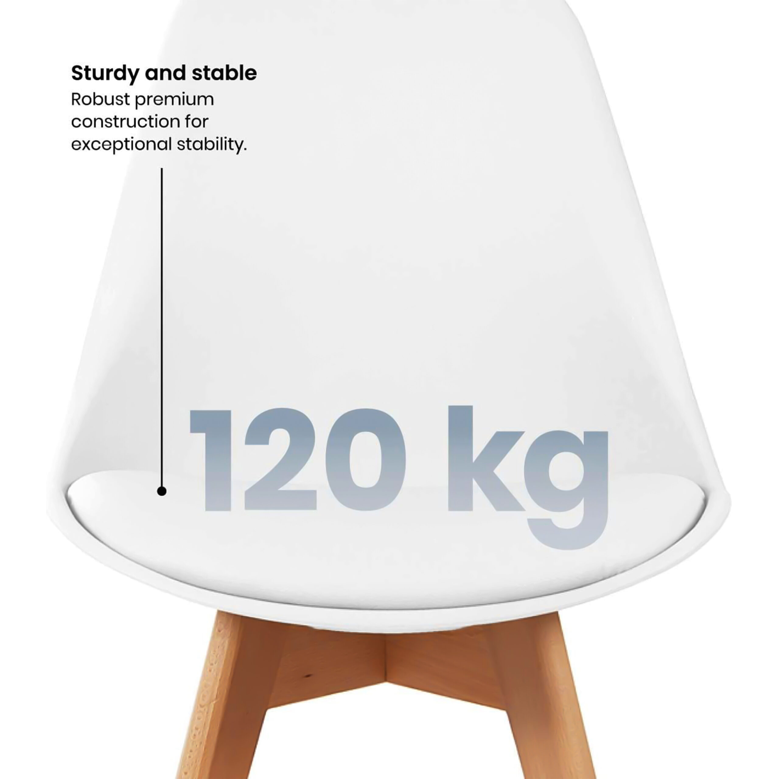 - DURABLE PP SEAT AND WOODEN LEGS: The dining chair features a sturdy polypropylene seat and strong beech wood legs, designed to support up to 120 kg of weight. The cross structure beneath the seat and protective foot pads add extra stability and prevent floor scratches while reducing noise.