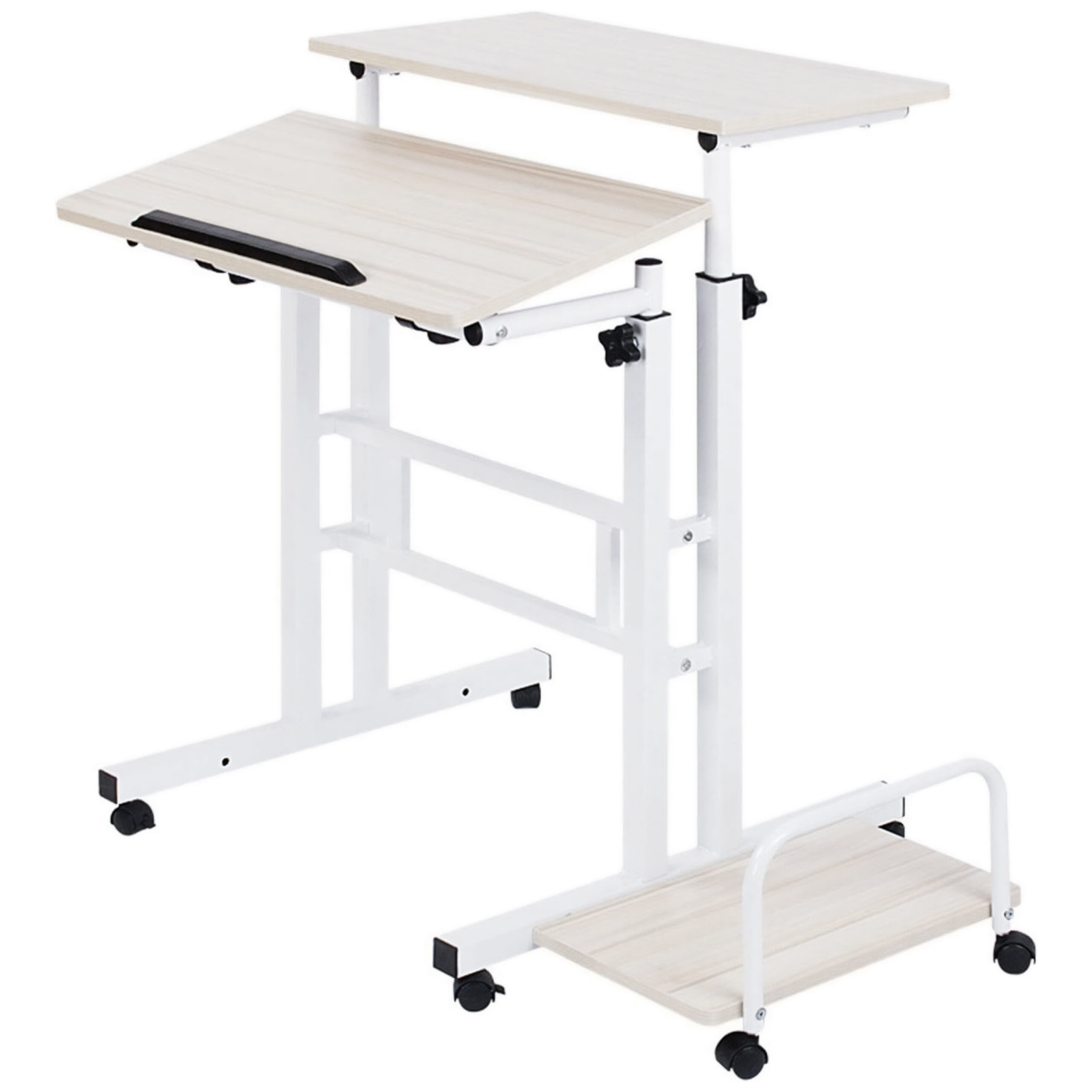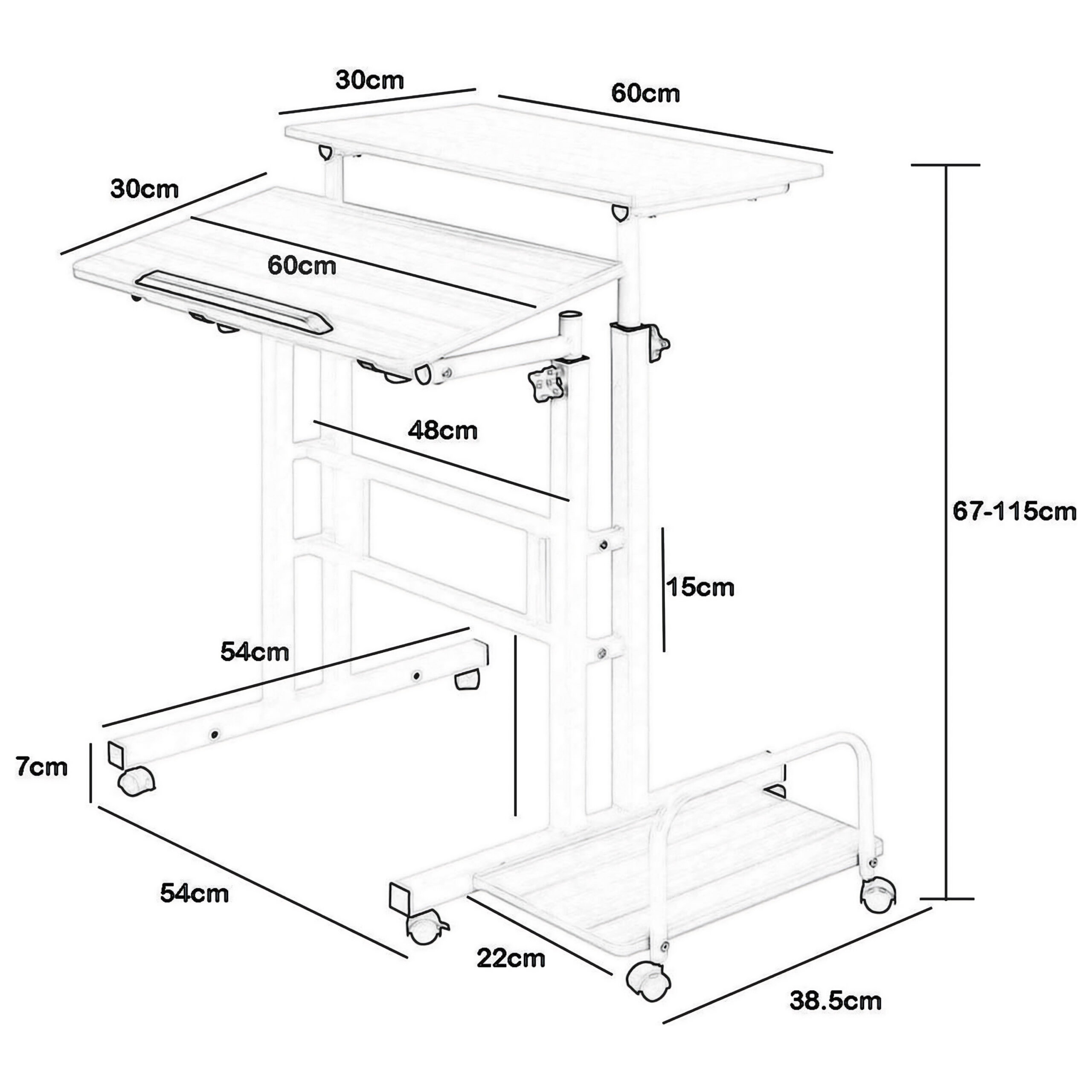 - COMPUTER TABLE ADJUSTABLE HEIGHT & EASY TO MOVE: The height of the portable laptop table can be adjusted from 67 cm-115cm as you wish, to sit or stand. 4 high-quality wheels with a lock make the computer desk up desk move smoothly and stop wherever you want.
