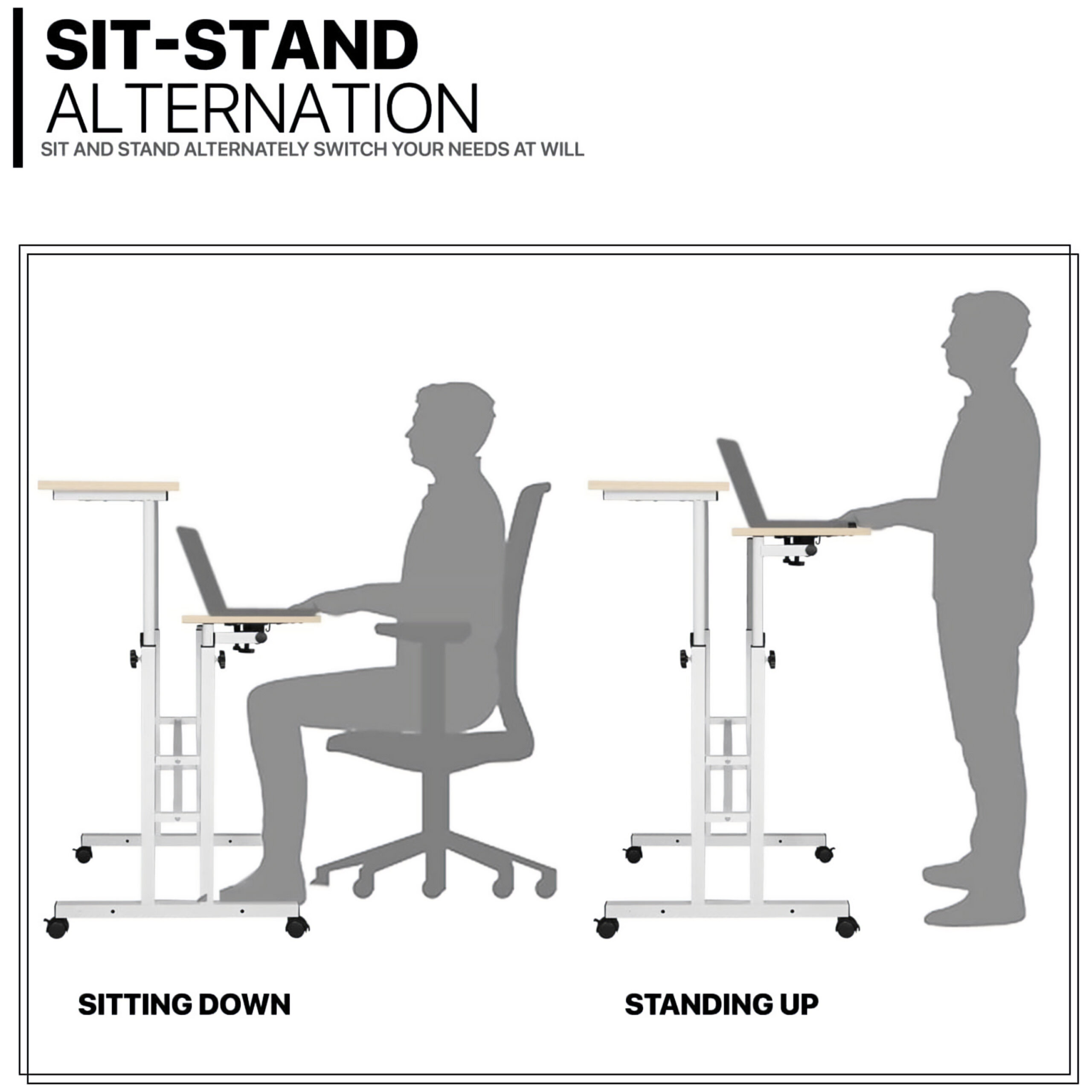 - ERGONOMICS COMPUTER OFFICE DESK: Changing between sitting and standing avoids the health problems of a long time sitting. Standing desk rolling computer desk promotes better posture, reduces back and neck pain, and a more healthy working position for you.