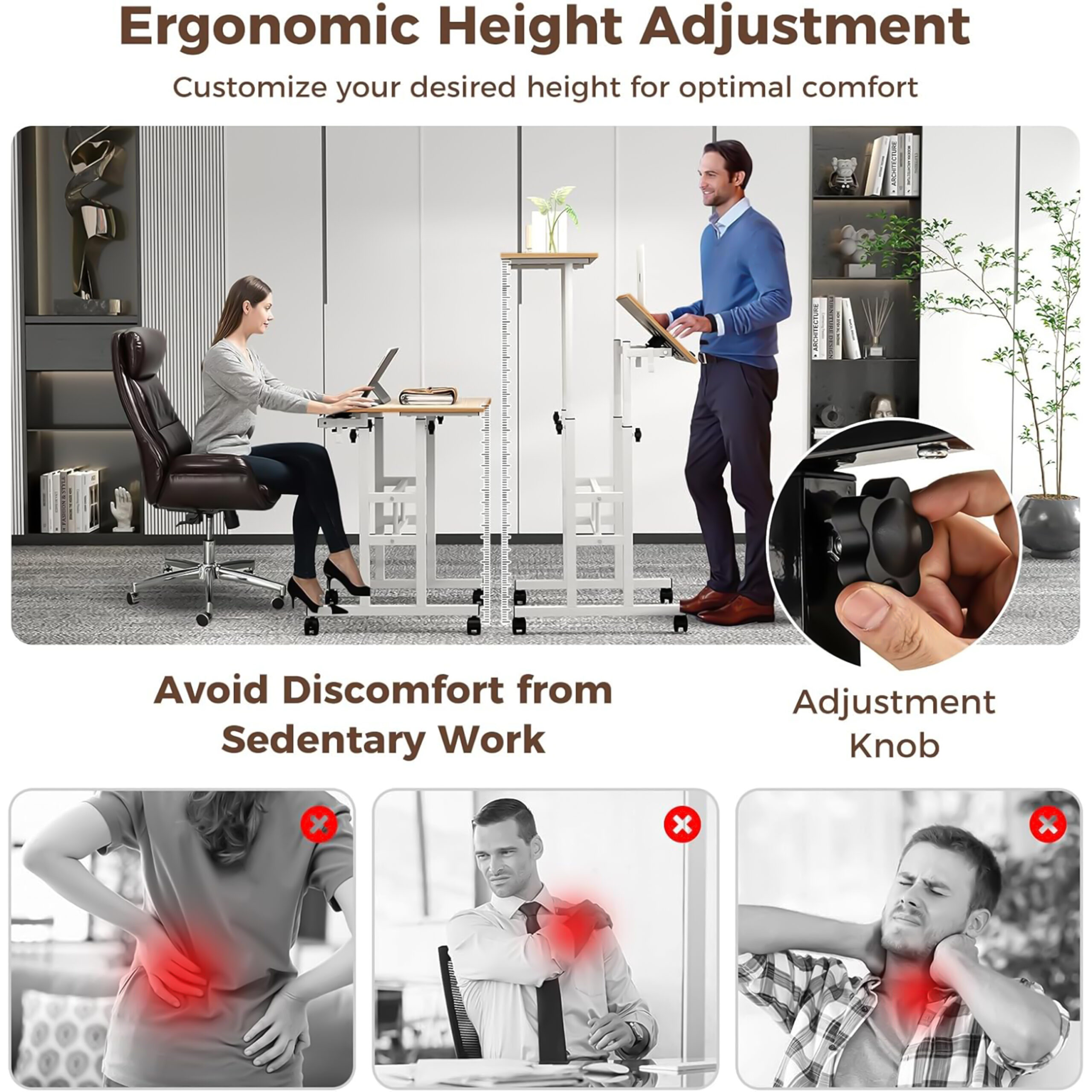 Height Adjustable Lap Desk with Locking Wheels -Black Color