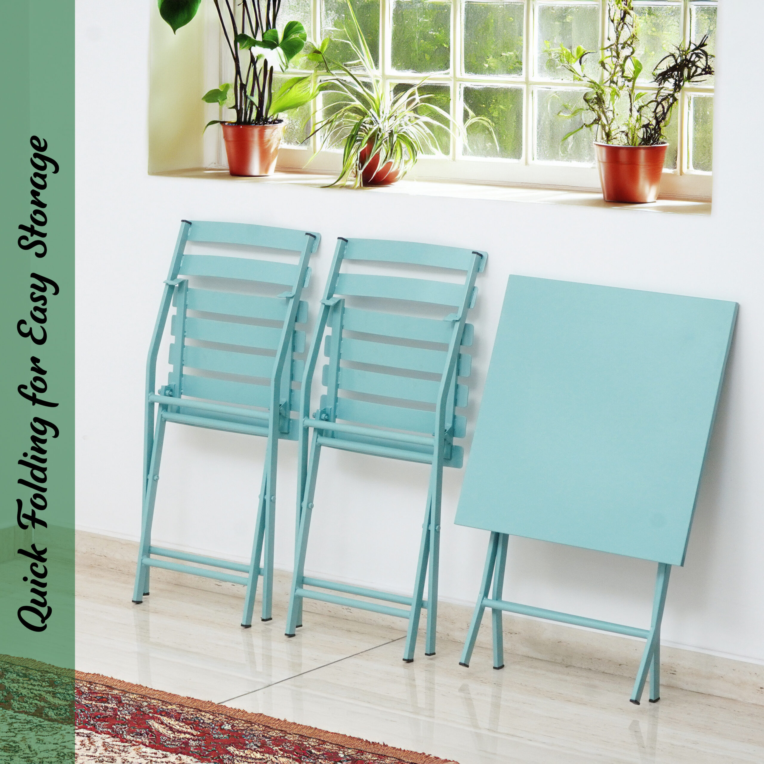 - MULTIPURPOSE FOLDING TABLE: The bistro sets are perfect for outdoor parties, beach, camping, balcony, garden table and can be used as a coffee table, indoor & outdoor dining table. Easy to carry and store, makes travel easier.