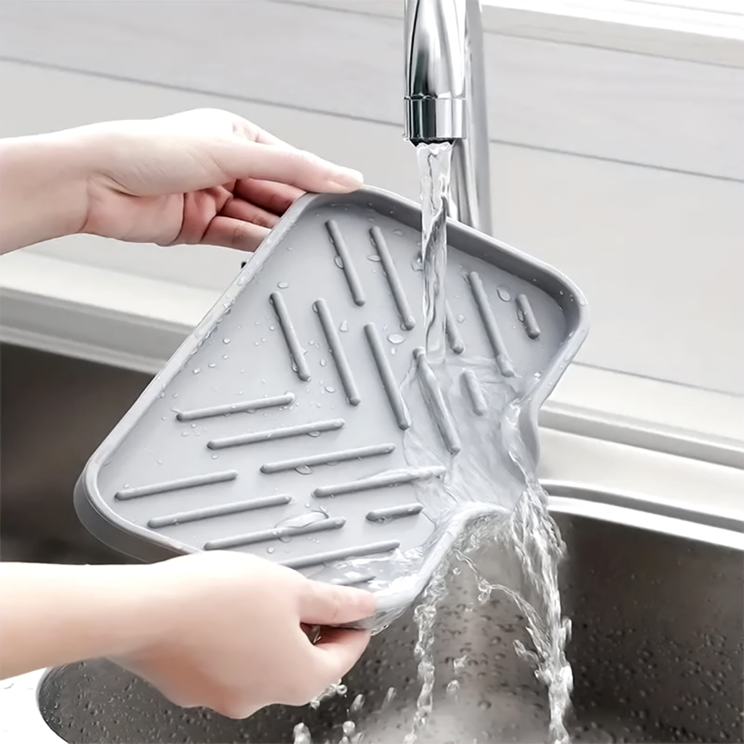- EASY TO CLEAN & MAINTAIN: Removable silicone tray rinses clean under tap; resists mold or mildew better than cloth mats or over-absorbent pads.