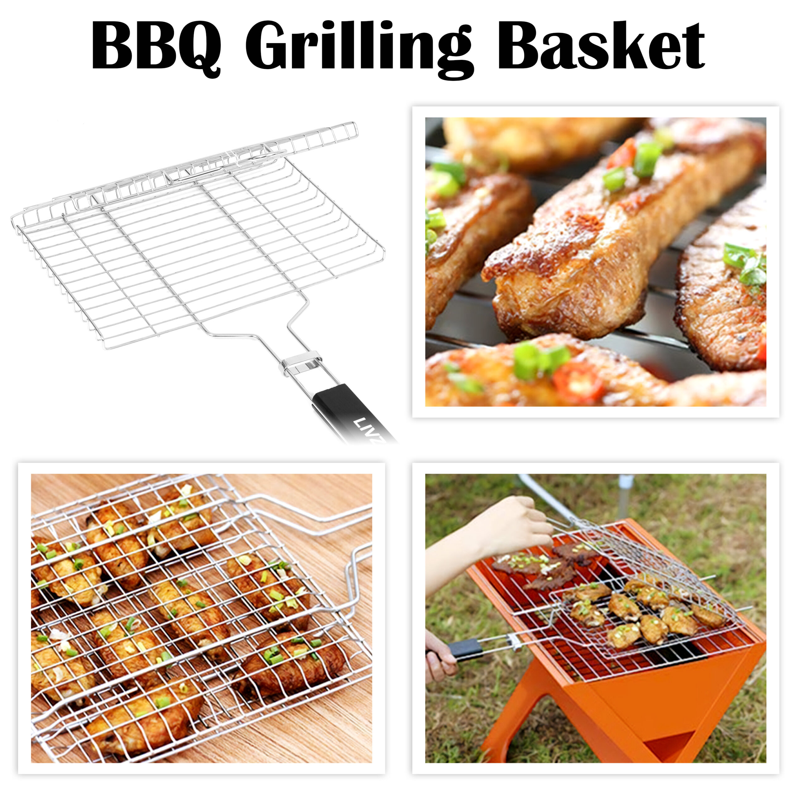 - EXCLUSIVE DESIGN: Foldable Basket Roast & Wooden Holder. Extended heat-resistant wood handle provides comfortable grip, which will keep you safe from the heat generated by grill.