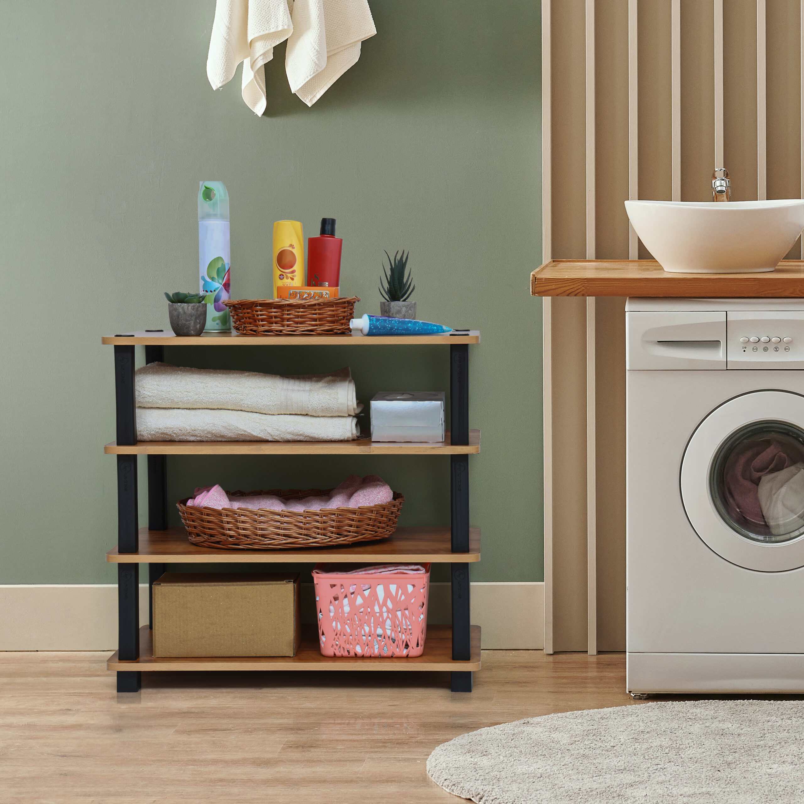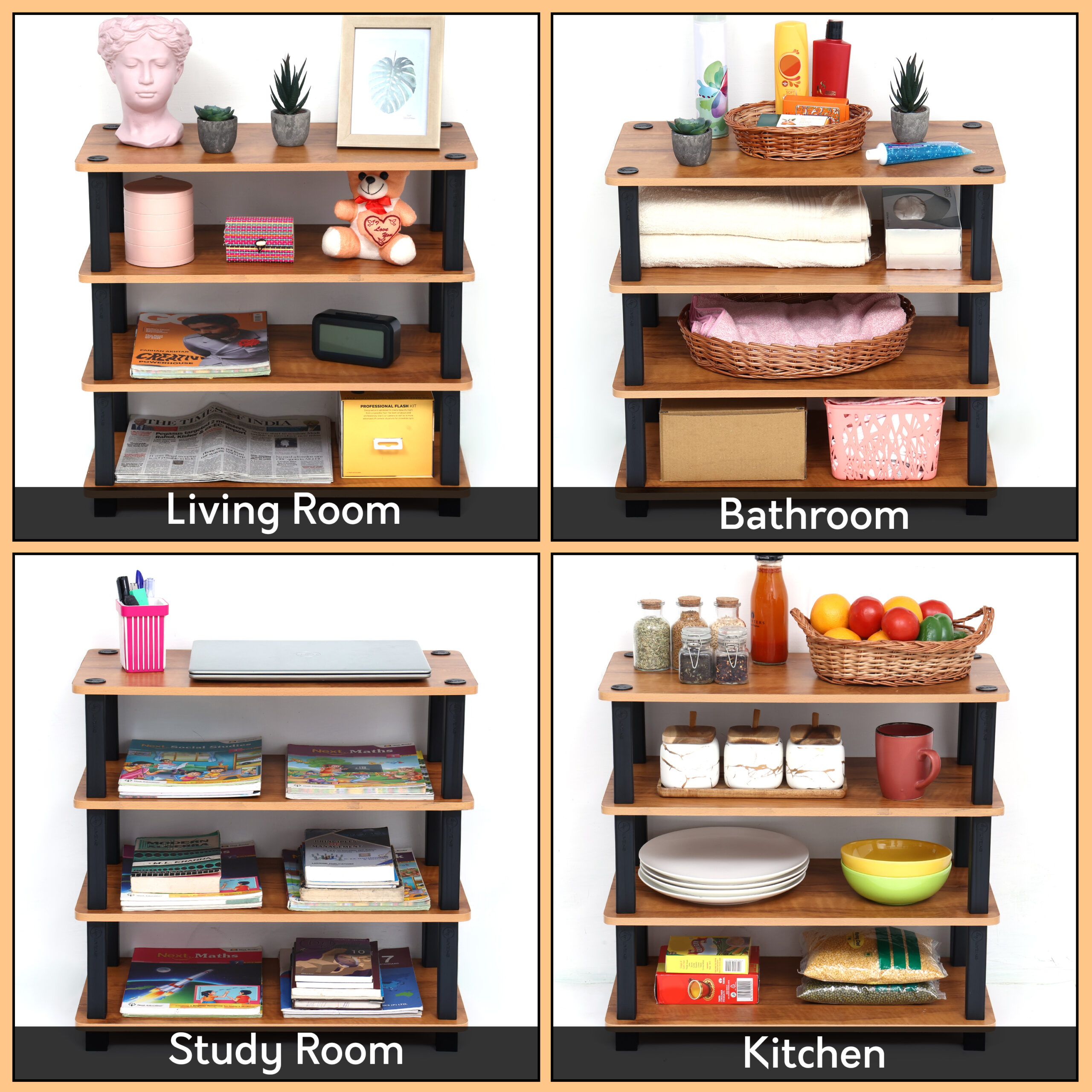 Livzing 4 Tier Turn-N-Tube Wooden Shoe Rack Organizer-Multipurpose Storage Shelves and Display Organizer with Utility Storage for Home Decor-Portable Shoe Stand-Kitchen Storage Rack–Brown
